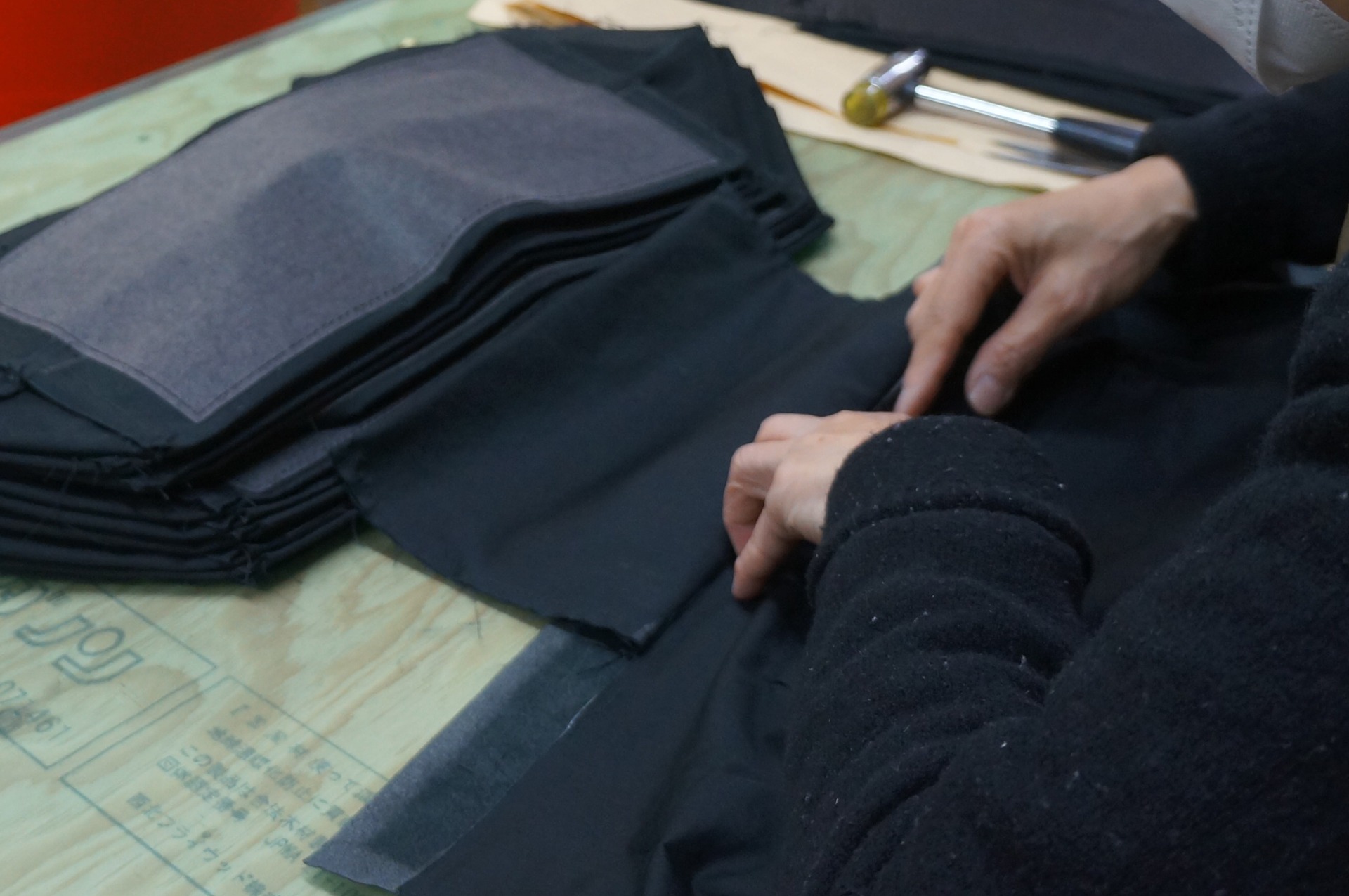 お客様からいただいたご要望をもとに、型紙のサンプルを作成し、その型をもとに試作品を製作します。お客様からのご要望に添える試作が完成し、了承をいただいた後、レザーやファスナー、金具、芯材などの部品発注を行います。この際に、型に沿ってレザーをプレス機で型抜きするためのタガネも必要に応じて発注します。