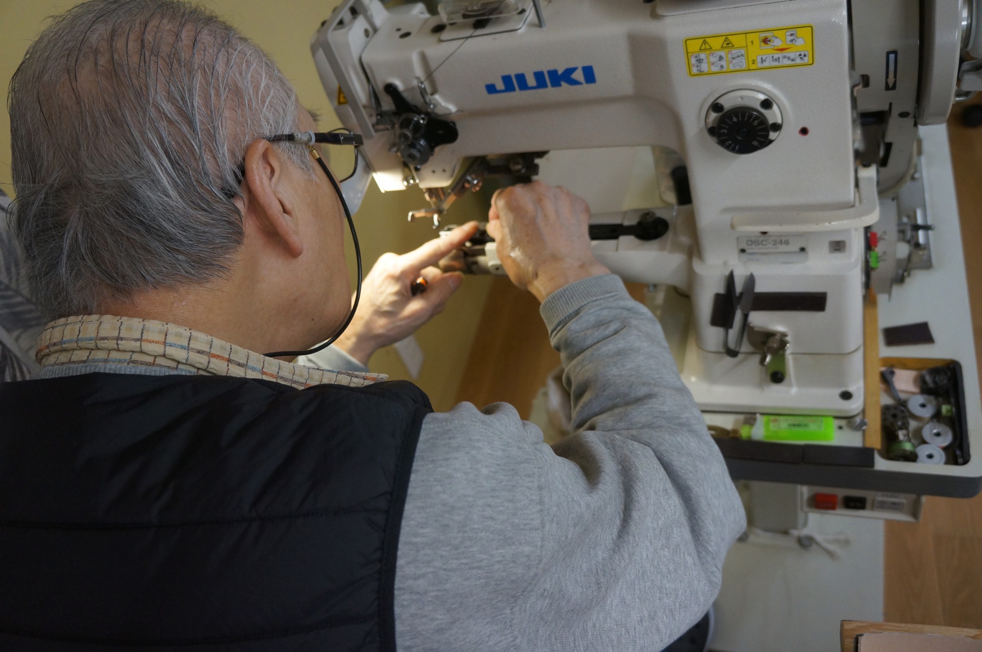 裁断したレザーや帆布、をミシンで繋ぎ合わせていきます。傷や跡がつかないように、注意を払いながら作業を行います。その後、レザーを磨いたり、ファスナーや金具、ボタンなどを取付けたら完成です。その後、製品に傷や不備がないかチェックします。チェックOKだった場合は、汚れをふき取り、梱包してお客様先へ出荷します。